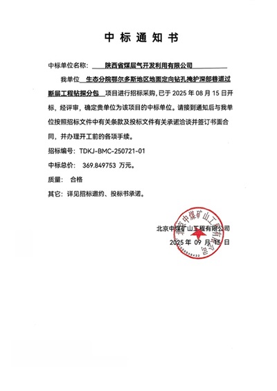 鉆井分公司中標(biāo)張家峁水文地質(zhì)探查工程2025-09-24
